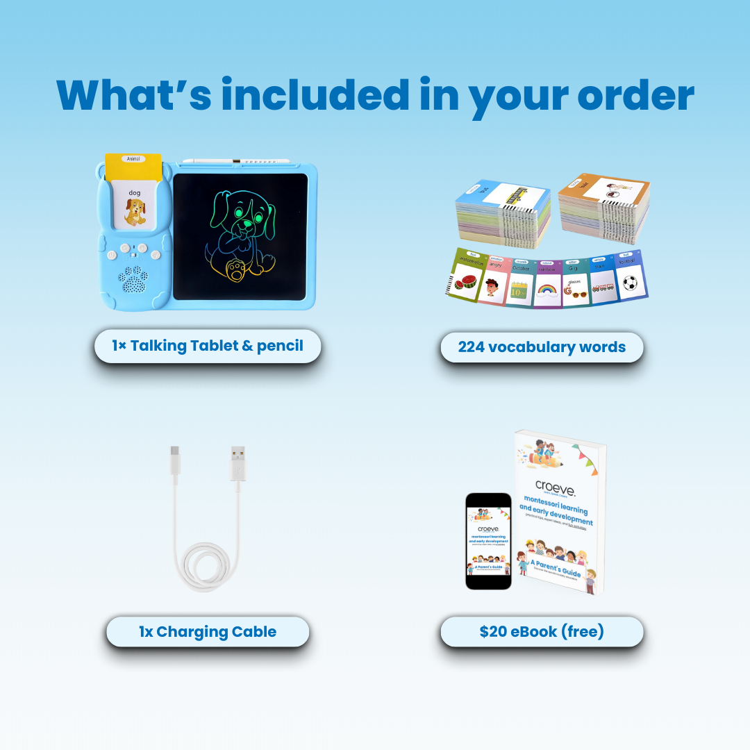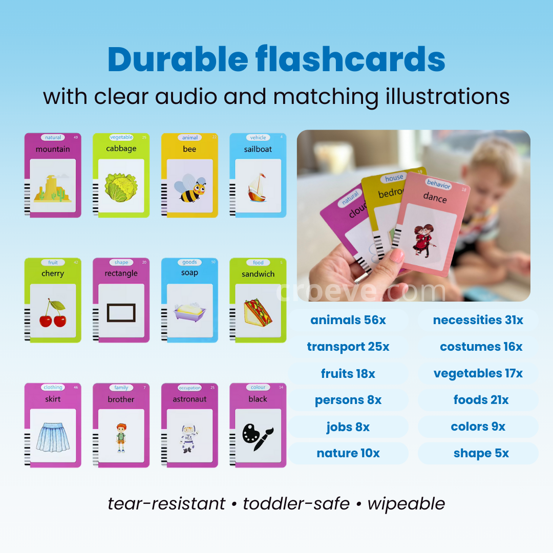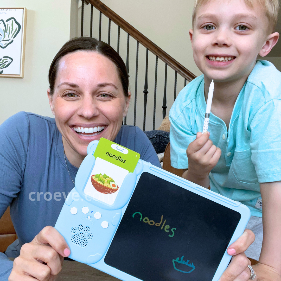 The Talking Tablet is designed to keep little ones engaged while building essential skills. Interactive flashcards introduce new words and focus on pronunciation, helping kids confidently hear, repeat, and articulate sounds.
