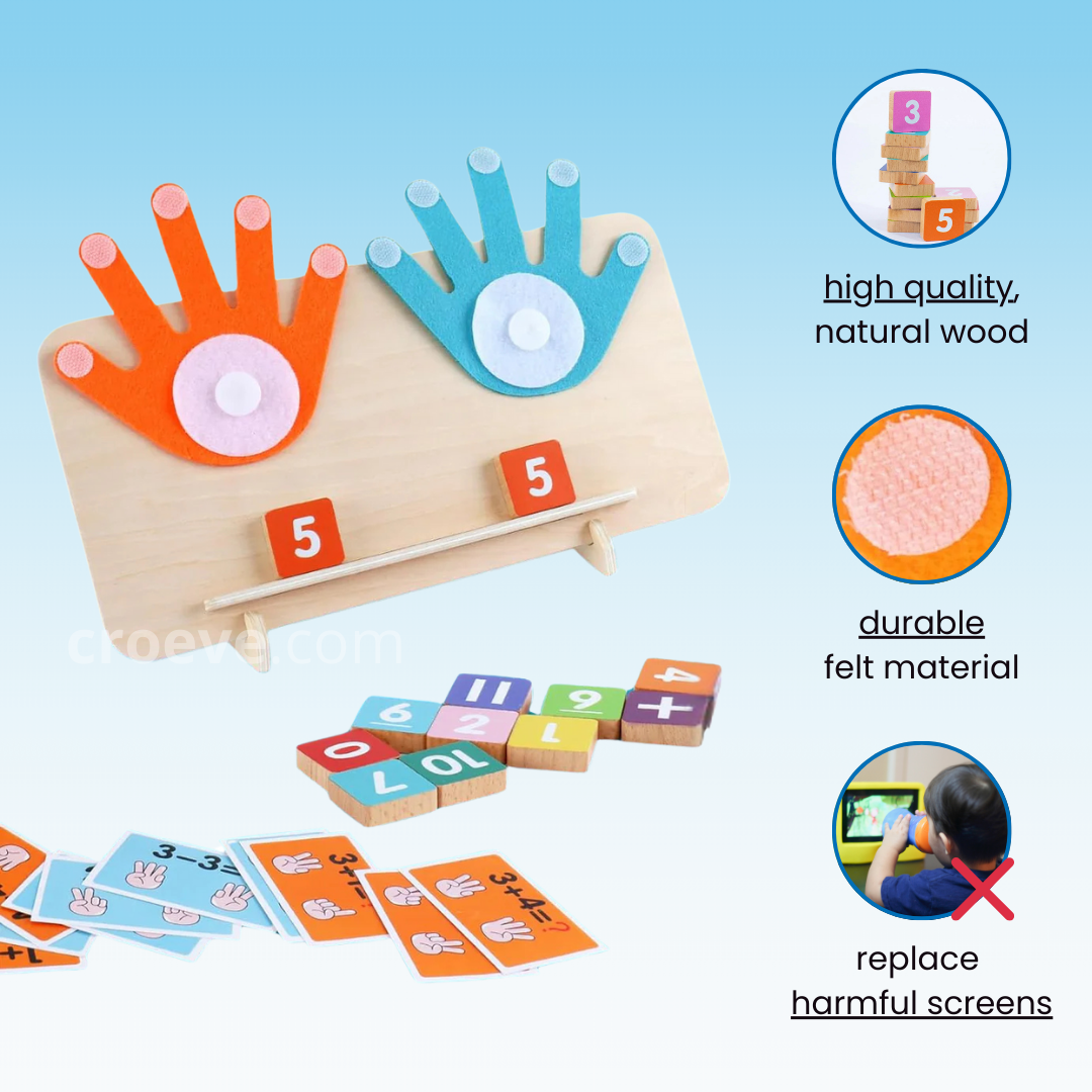 The Croeve Math Learning Board helps kids see, touch, and truly understand numbers. With colorful number tiles, counting hands, and activity cards, children learn to count, add, and subtract through hands-on play rather than memorization.